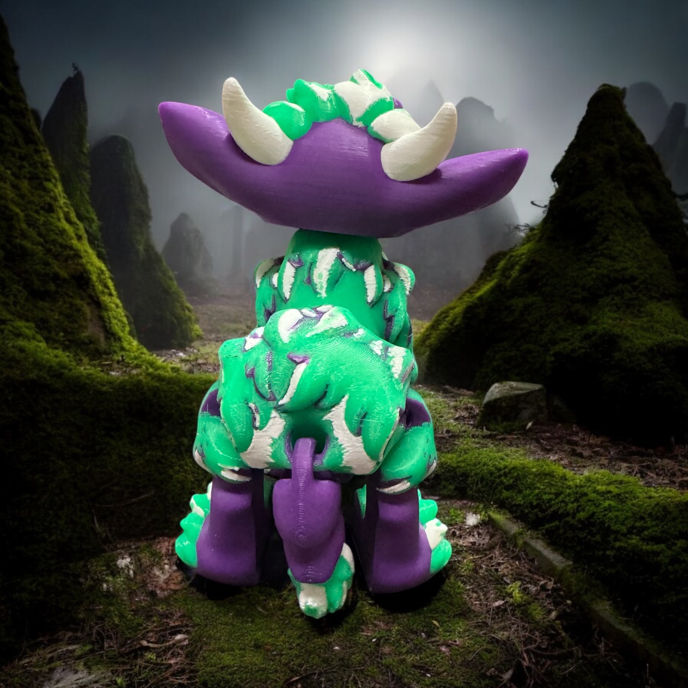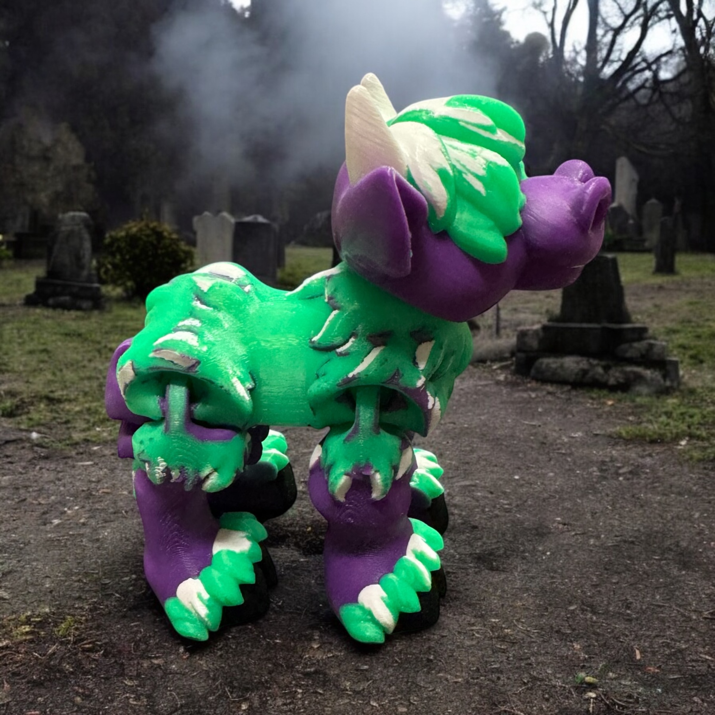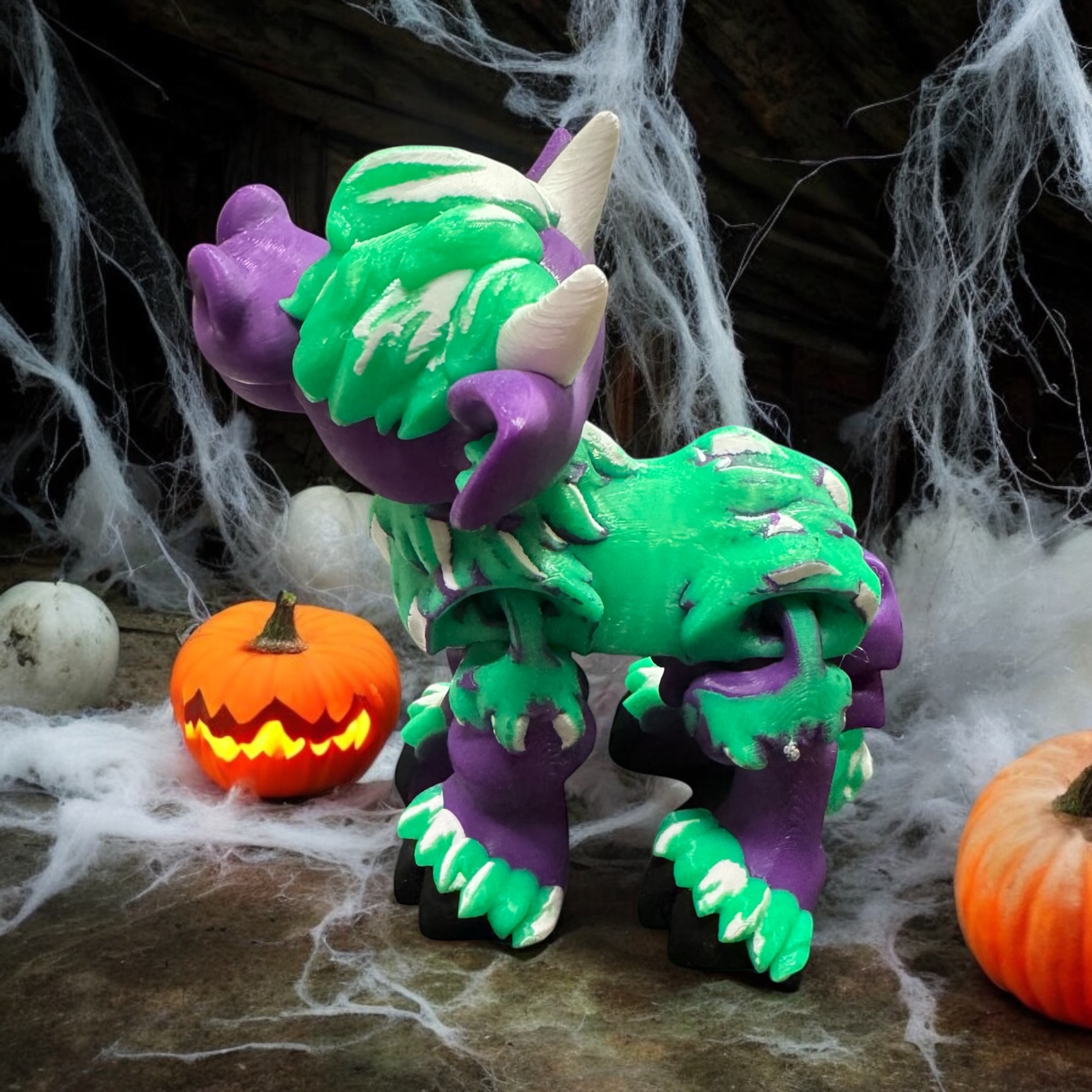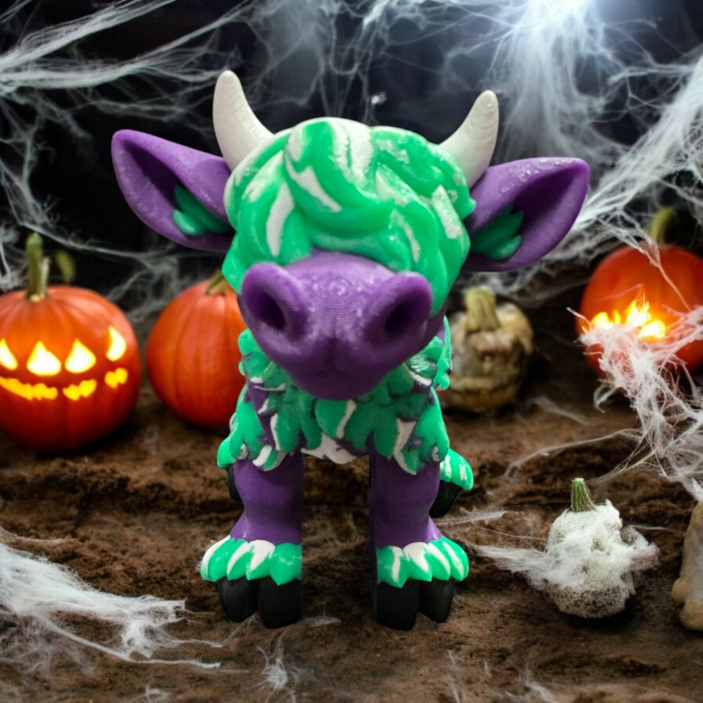 3D Printed Joker Highland Cow in Mystic Purple, Neon Green, White, & Black PLA