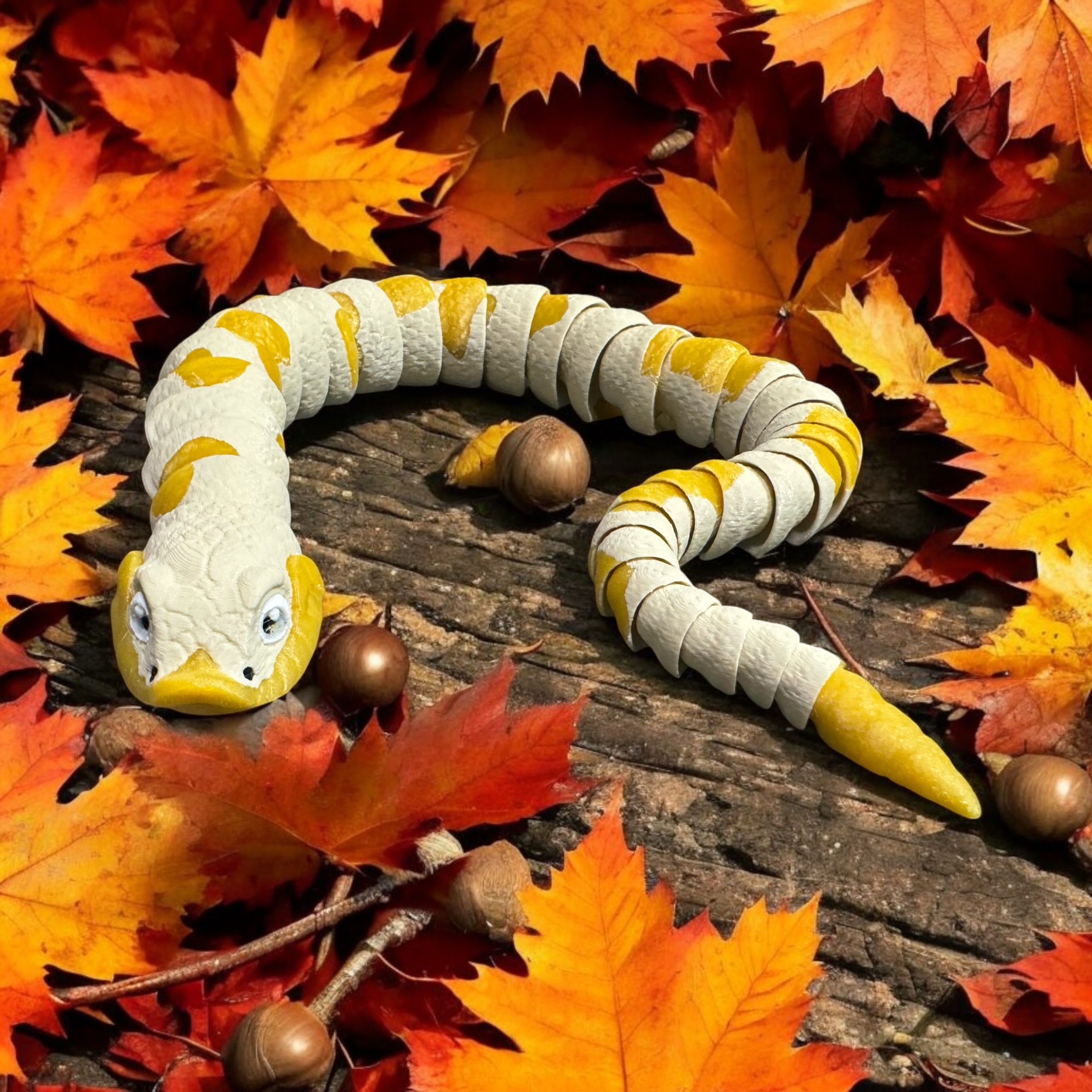 3D Printed Hognose Snake in Tan, Gold, Black, White PLA
